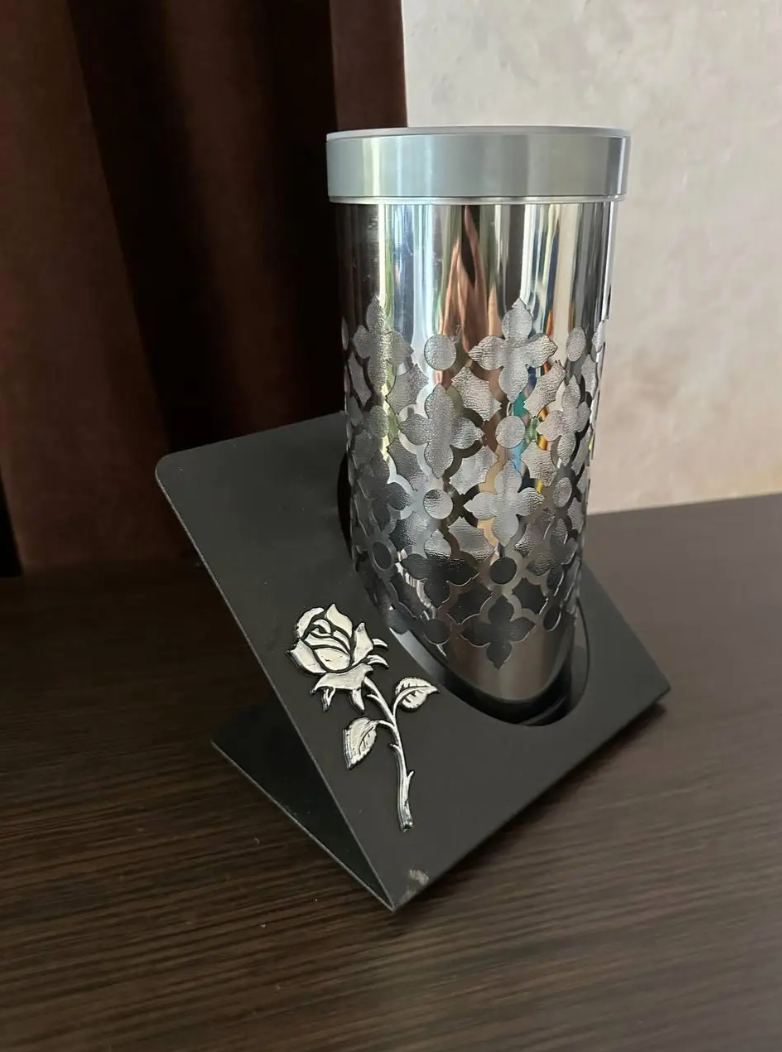 Лампадка «Вічне світло пам'яті» круг з трояндою (Срібло)