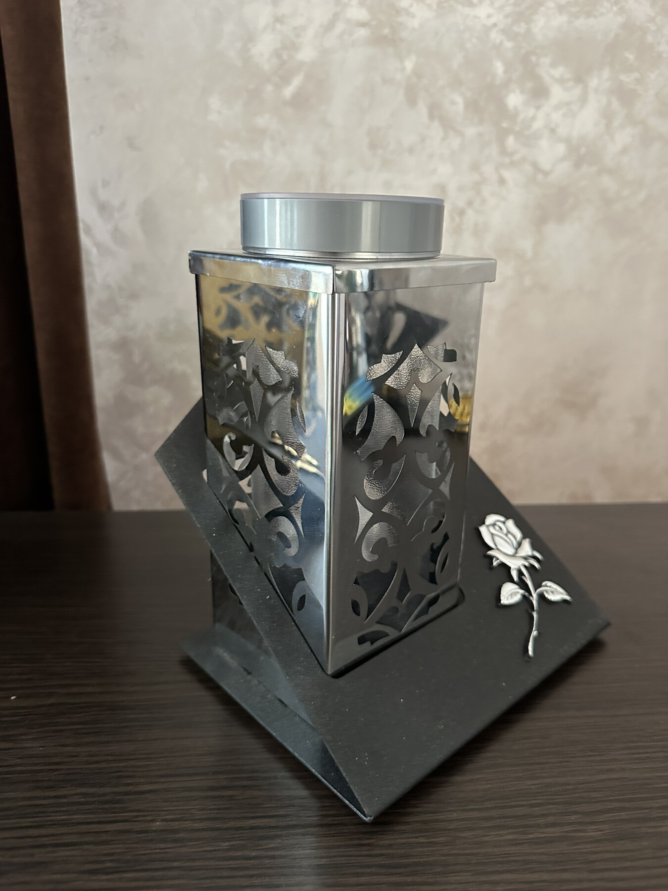Лампадка квадратна з трояндою (срібло)