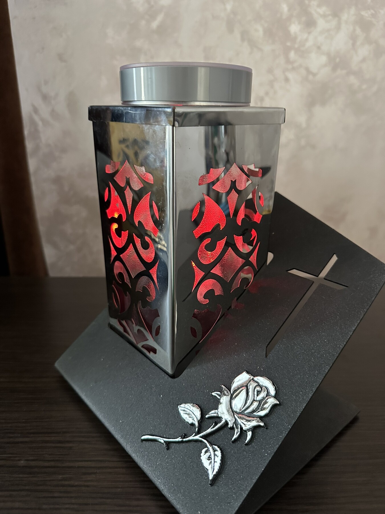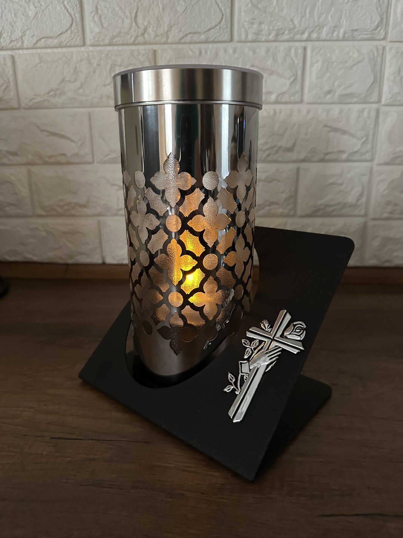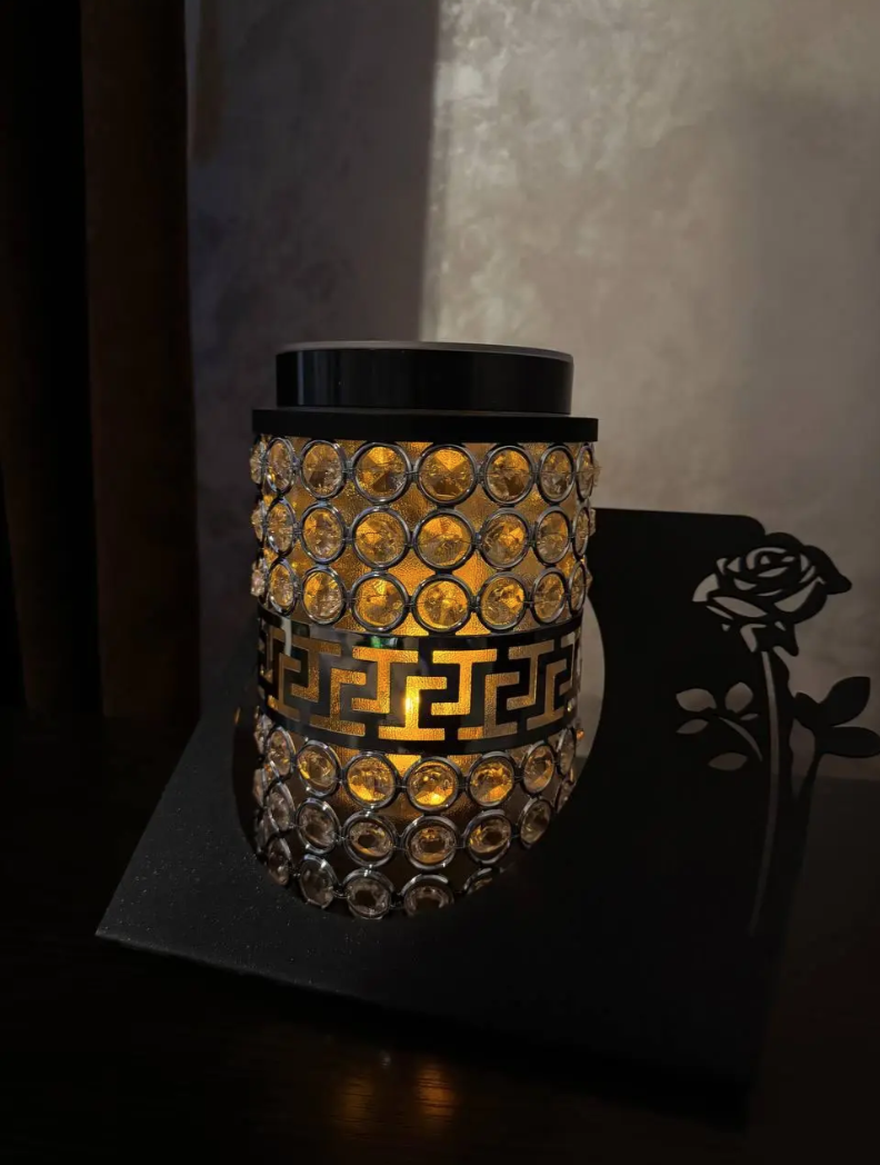 Лампадка на сонячній батареї з трояндою круг (Срібло)
