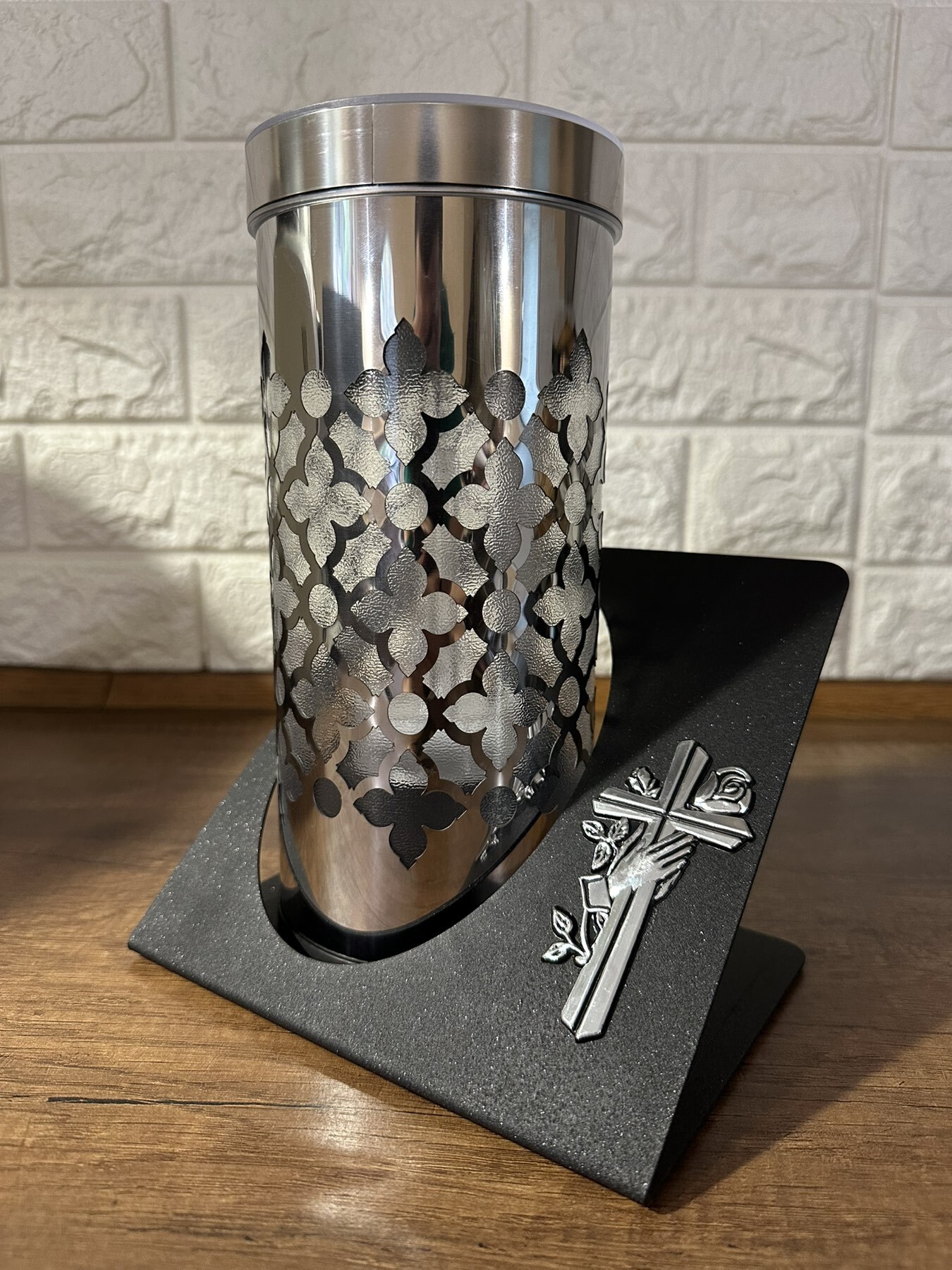 Лампадка «Вічне світло пам'яті» круг з трояндою (Срібло)
